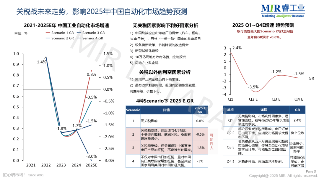 从二季度起头,中美商业和将对市场发生短期影响,特别是电子和一般工业范畴,这将为2025年市场带来必然的不确定性,因而对全年市场的预测从岁首年月的两位数增加下调至6%。