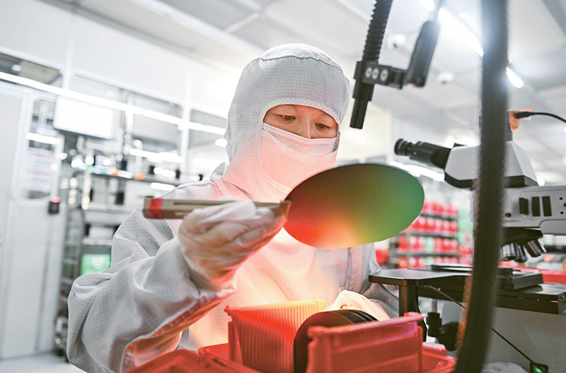 近年来,姑苏工业园区加速建立由6个沉点财产集群和23条沉点财产链构成的“623”财产系统,聚焦科技立异,发力生物医药及大健康、纳米手艺使用及新材料等新兴财产,探索新的成长动力和坐标。图为2024年11月12日,正在姑苏工业园区纳米财产手艺研究院无限公司,工做人员正在出产车间查抄晶圆质量。 记者 季春鹏/摄?。