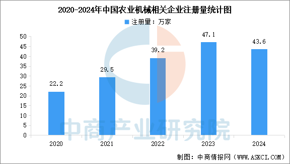 中商谍报网讯:农机配备是保障国度粮食平安、扶植农业强国的主要支持。近年来,我国从环节焦点手艺攻关、推进市场推广等多方面鞭策农机配备高质量成长。企查查数据显示,近十年,我国农业机械相关企业注册量根基逐年添加,此中2020年我国农业机械相关企业注册量同比添加40。7%至22。2万家,2023年,达近十年相关企业注册量峰值。截至3月31日,2025年我国已注册13。3万家农业机械相关企业,